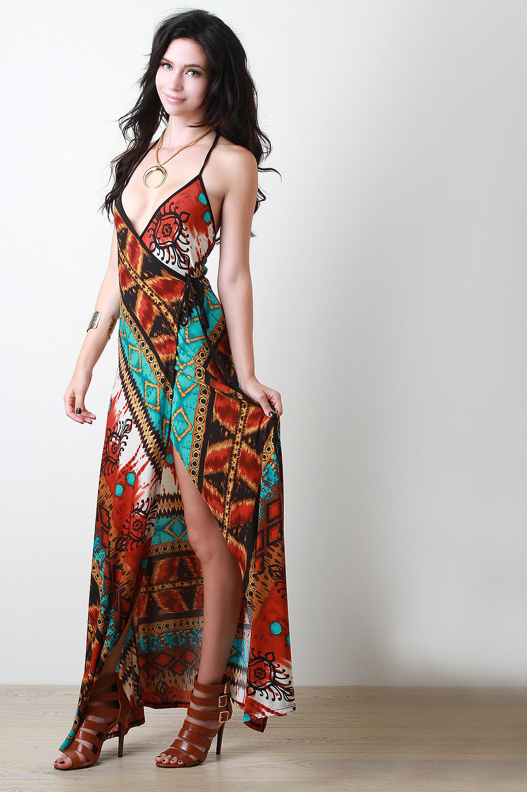 Tribal Halter Wrap Maxi Dress